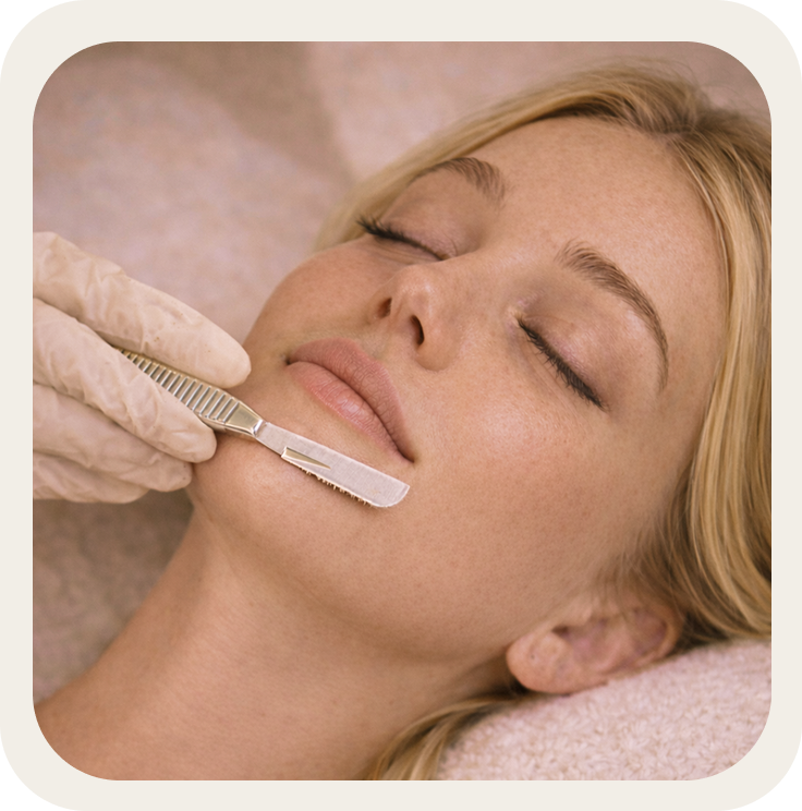 Dermaplaning + microneedling que estimula colágeno y mejora manchas, marcas y luminosidad.